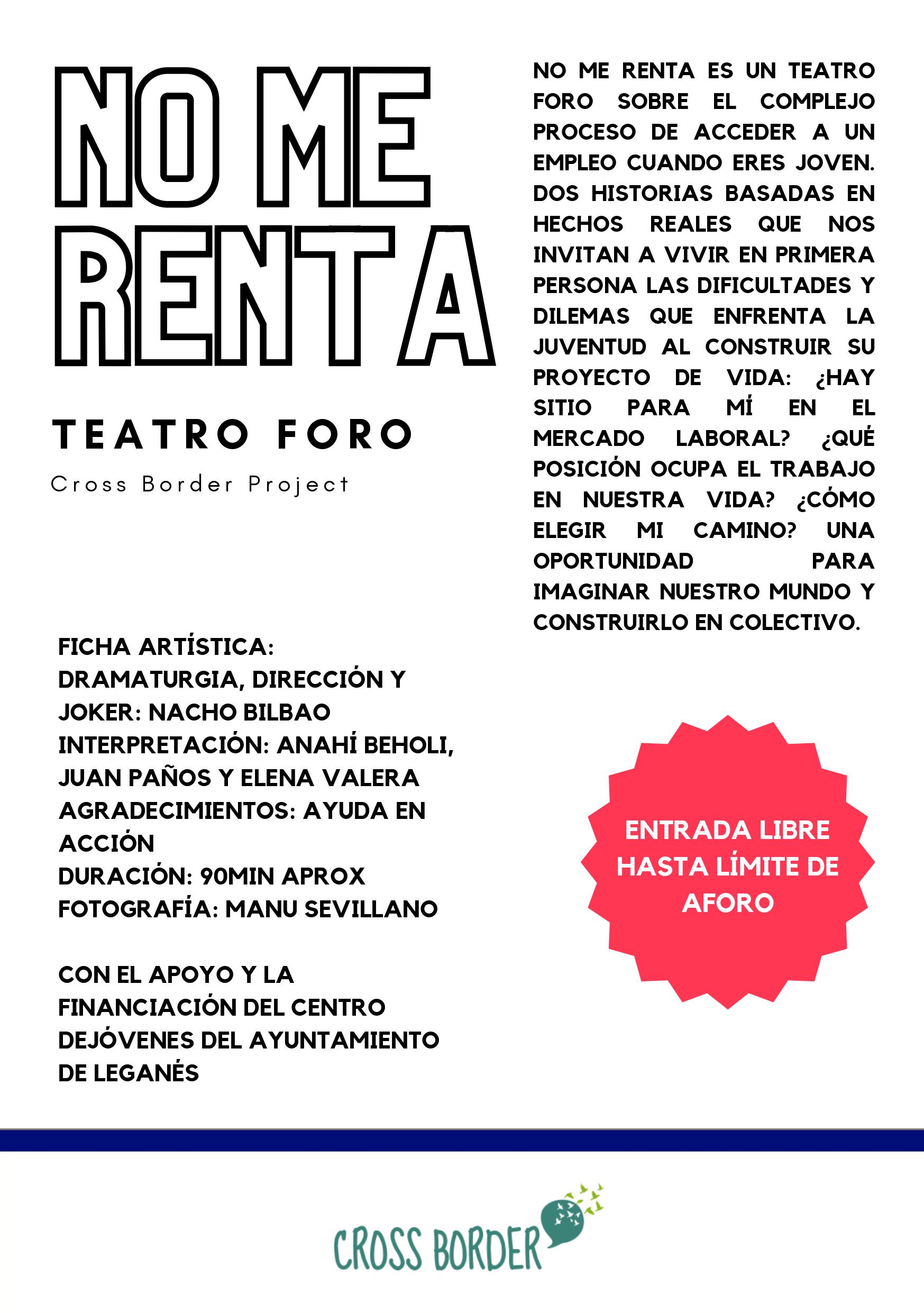 Os invitamos a la representación del Teatro Foro No me Renta una historia sobre el complejo proceso de acceder a un empleo cuando eres joven