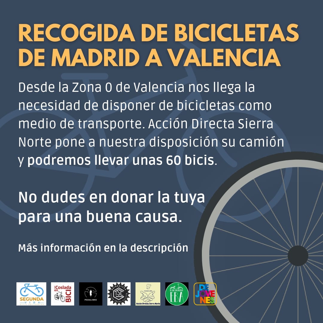 Recogemos bicis que estén en buen estado para que puedan ser utilizadas por las personas afectadas por la dana en Valencia.